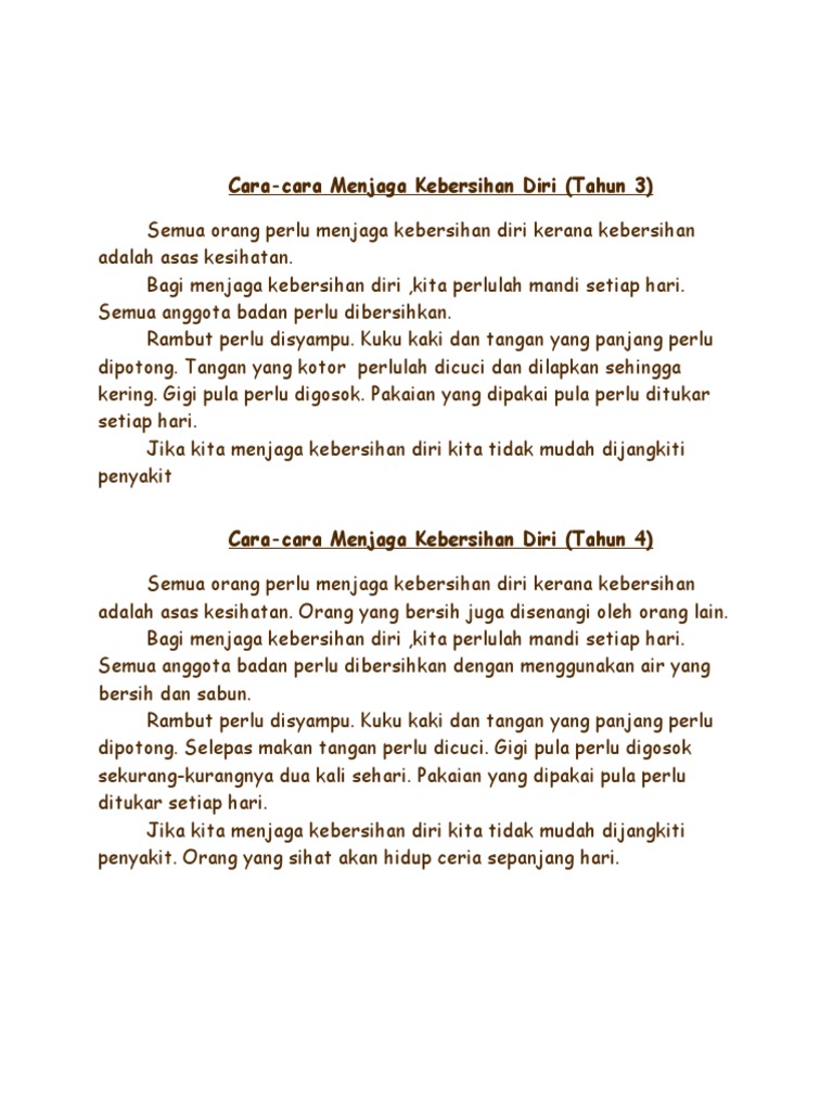 Karangan Cara Cara Menjaga Kebersihan Diri Tahun 4