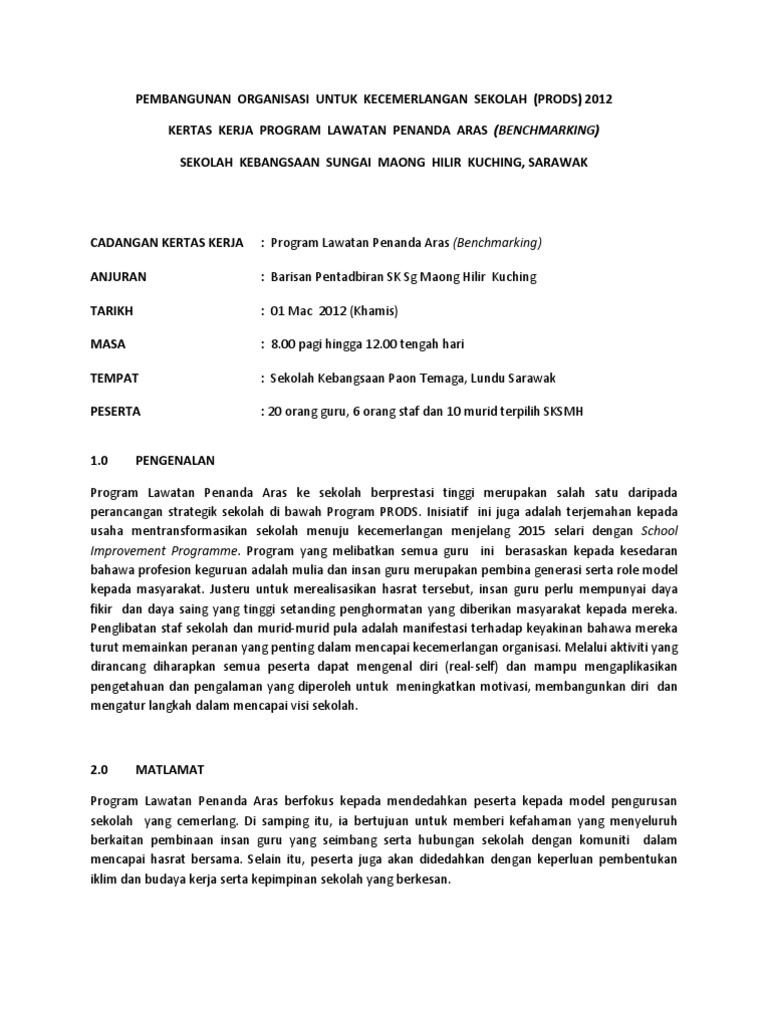Doc Kertas Kerja Lawatan Penanda Aras Ke Sekolah Kuster Kecemerlangan Big Fasa 5 Kakdorm Kakdorm Academia Edu