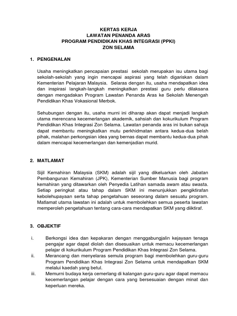 Kertas Kerja Lawatan Penanda Aras 25 Mei 2014 Doc Pdf Document