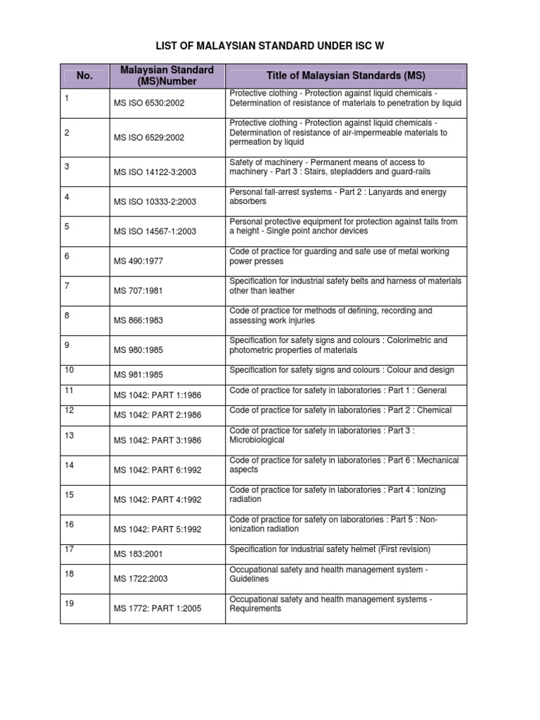 List Of Malaysian Standard International Electrotechnical Commission Air Pollution