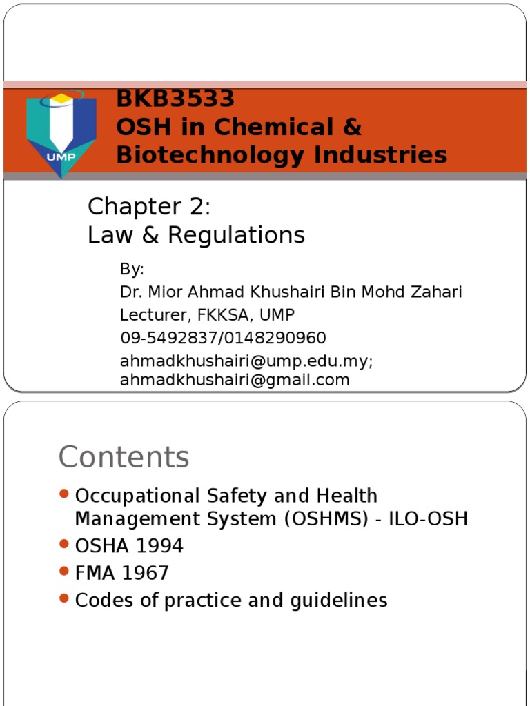 Bkb3533 Chapter 2 Law Regulations Occupational Safety And Health Occupational Safety And Health Administration