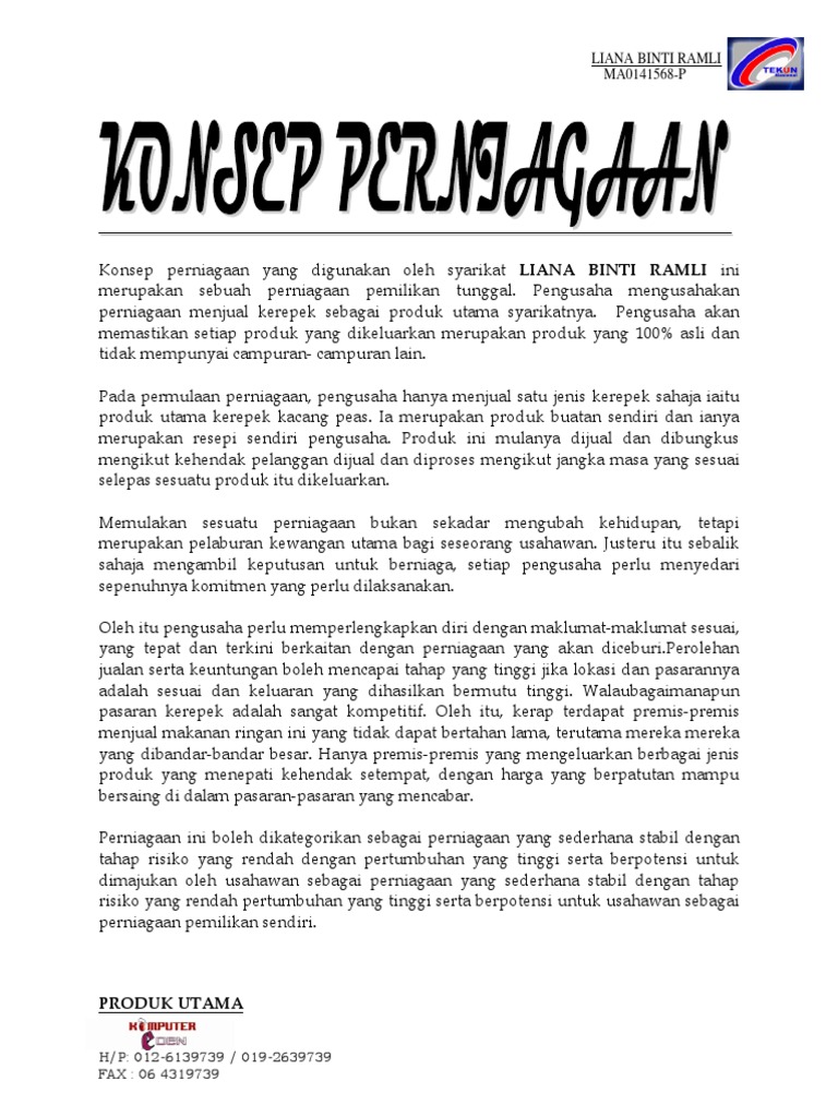 Contoh Pbs Pengajian Perniagaann Rancangan Perniagaan Produk Penjaga