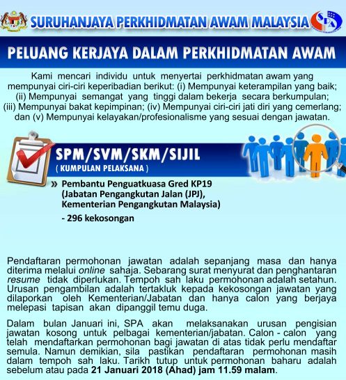 Iklan Jawatan Pembantu Penguatkuasa Jpj Kp19 Kerja Kosong Kerajaan Swasta